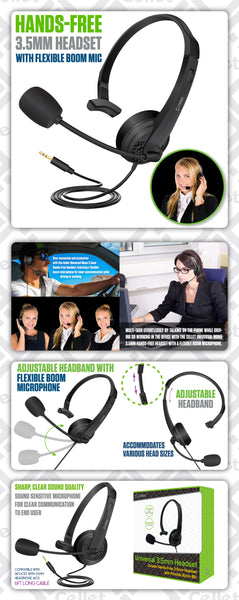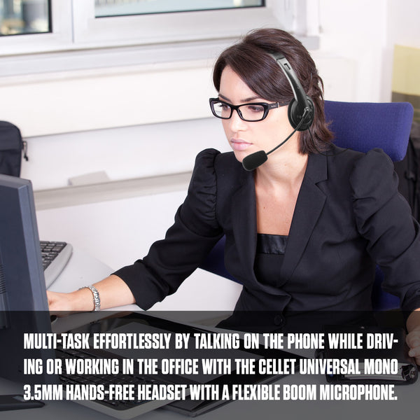 Stay productive and connected while on the move. The Cellet Universal Mono 3.5 mm Hands-Free Headset features a flexible boom microphone and adjustable headband, enabling you to multitask effortlessly—whether you’re driving, working from a desk, or in a call center environment. The single-ear mono design keeps one ear free for ambient awareness, while delivering sharp, clear sound quality for conversations and voice calls. It’s universally compatible with any device that accepts a 3.5 mm audio jack. With a comfortable fit, flexible positioning, and a professional look, this headset is the ideal choice for work-from-home setups, office environments, webinars, online training, and more.