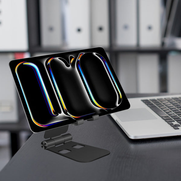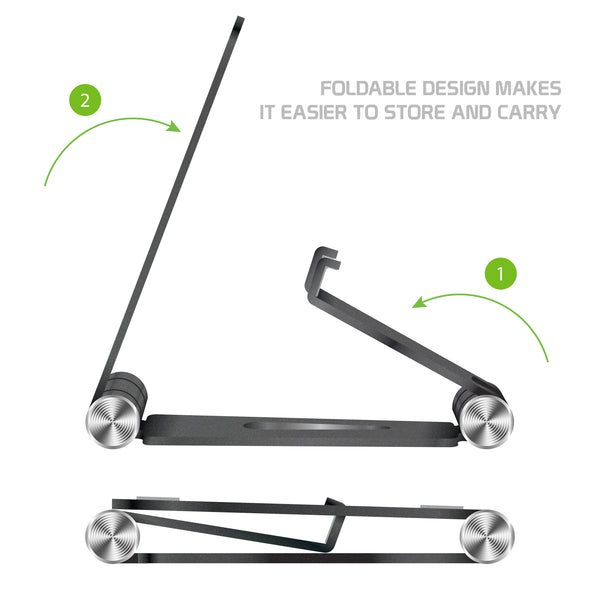 Mount your Smartphone, iPad, or tablet onto your desk or any flat surface at home with the Adjustable Aluminum Stand. Slim and lightweight, this mount can be folded to make it easier to store and carry when traveling. Equipped with anti-slip rubberized and soft holder grips, it ensures a secure hold onto your device. The 270-degree rotation capability lets you view your device in any desired position. The base is equipped with non-slip rubberized grips to ensure the stand stays in place. An accurate cutout was added for your charging cable to maintain a neat and tangle-free environment.