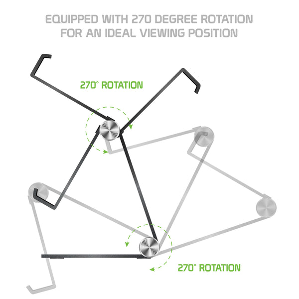 - Dual 270-degree multi-angle adjustable stand ideal for reading recipes while cooking, highly convenient desk accessory for office and home use. Easily adjusts to vertical or horizontal viewing when playing games, watching videos, viewing photos, online reading, shopping, or typing.