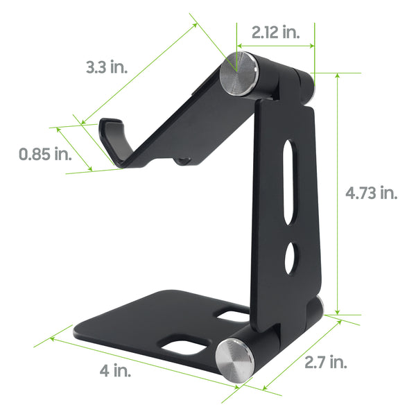 - The foldable design makes it easier to store and carry just about anywhere. Resilient Aluminum C made stand 5 in, 4 x 5.5, and about 1.24 lbs.